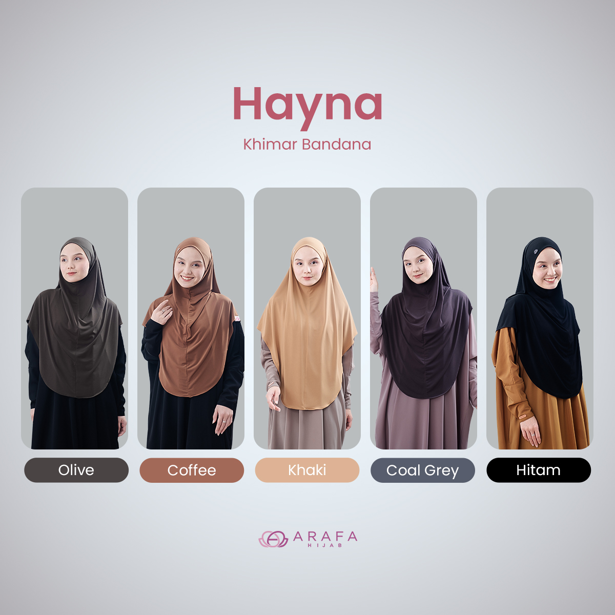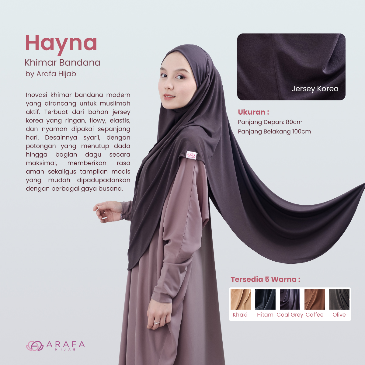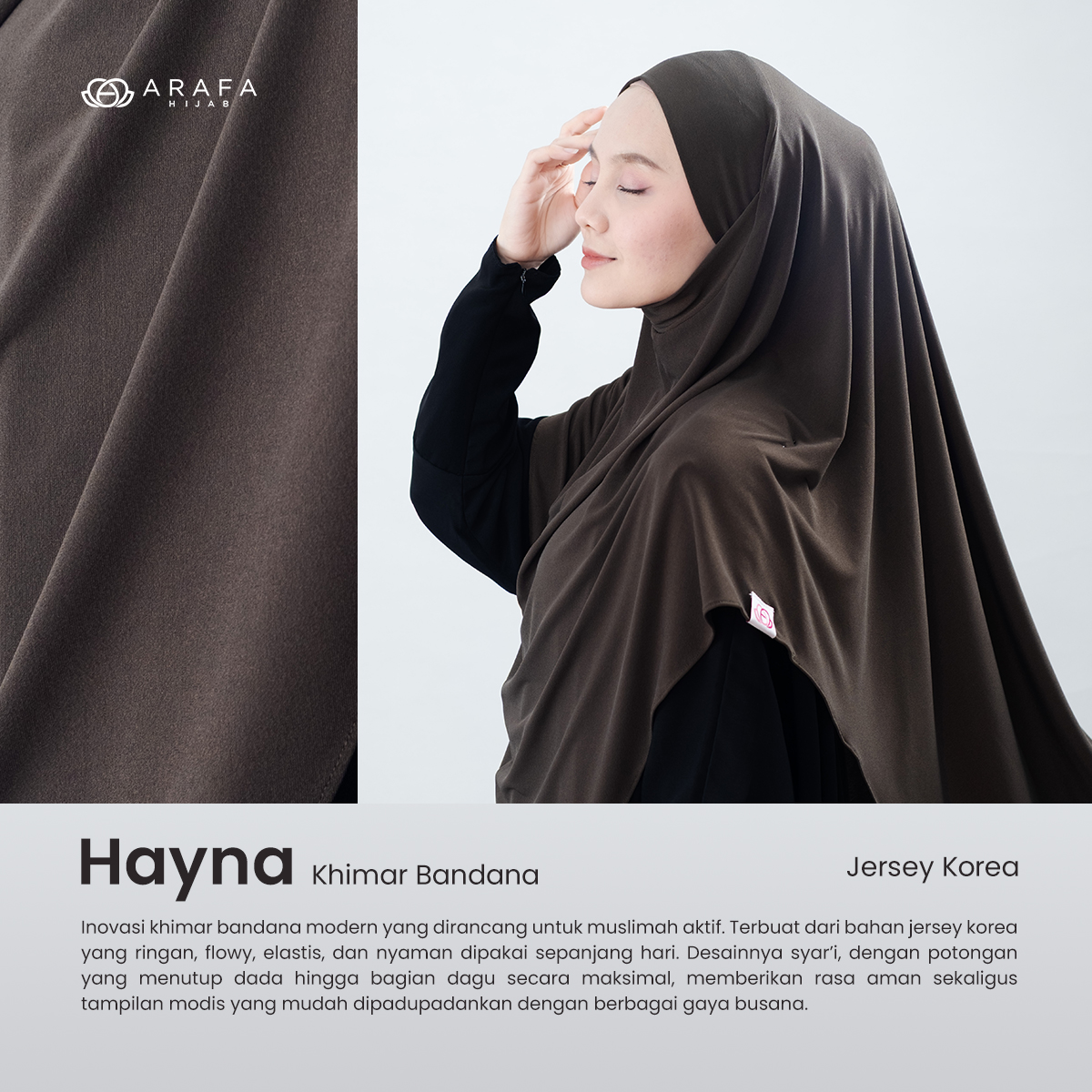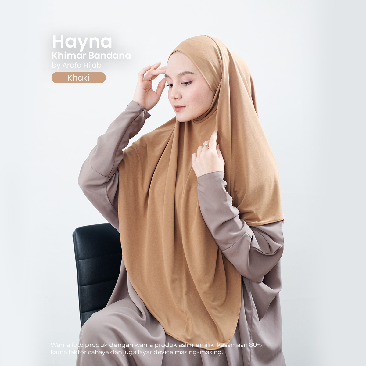 Hayna Khimar adalah inovasi khimar bandana modern yang dirancang untuk perempuan muslimah aktif. Terbuat dari bahan korea jersey yang ringan, flowy, elastis, dan nyaman dipakai sepanjang hari. Desainnya syar’i, dengan potongan yang menutup dada hingga bagian dagu secara maksimal, memberikan rasa aman sekaligus tampilan modis yang mudah dipadupadankan dengan berbagai gaya busana.