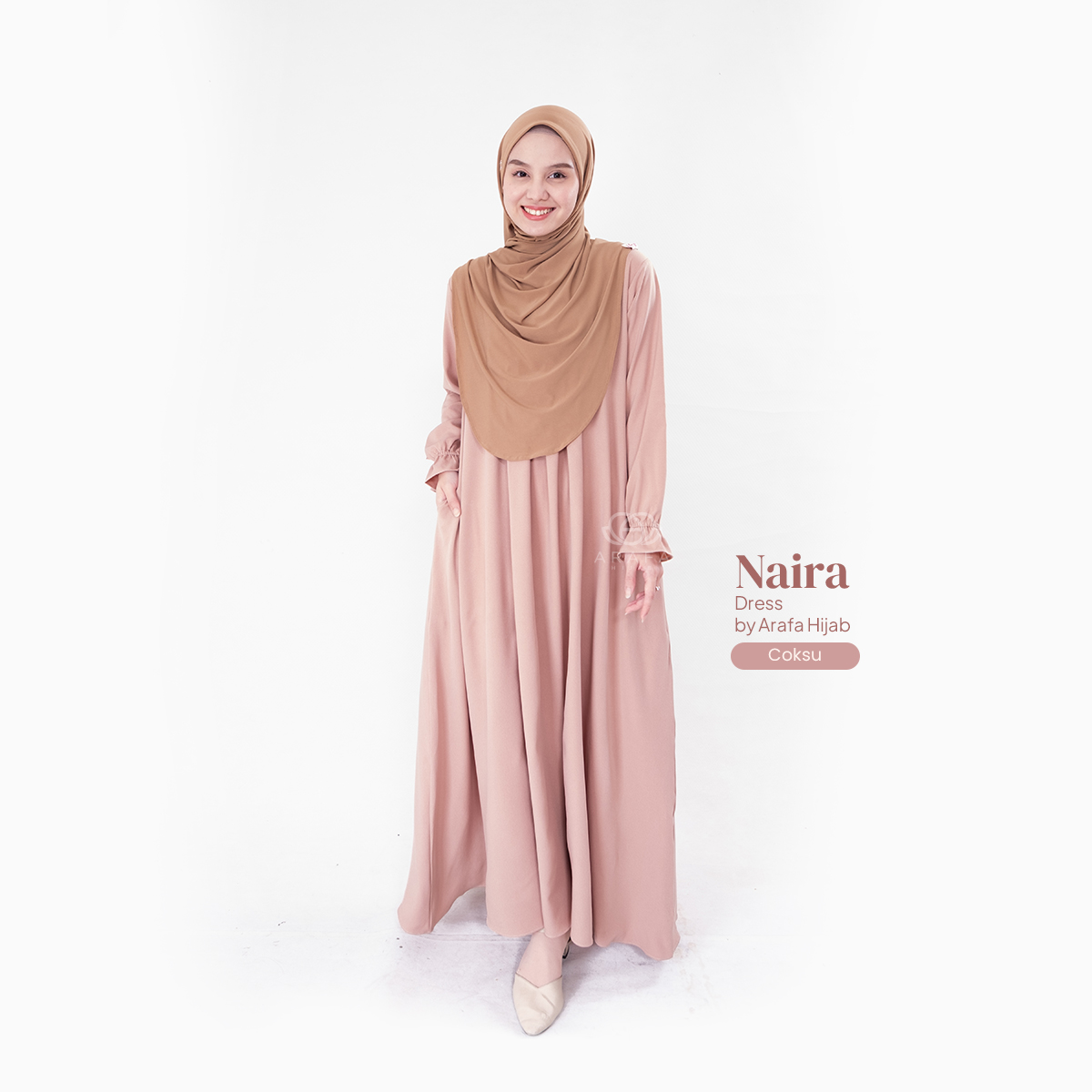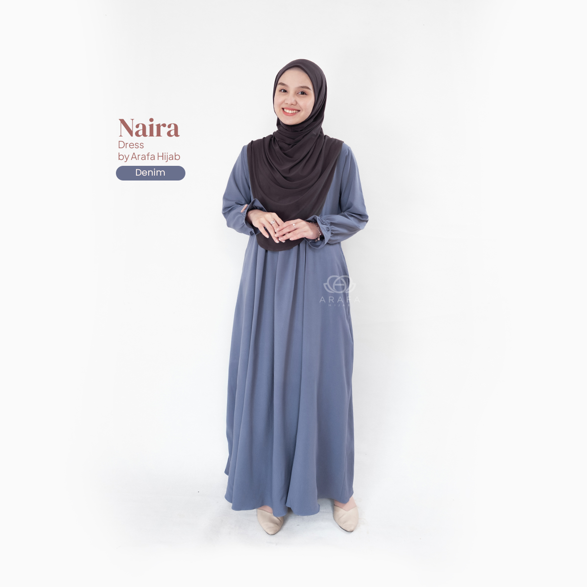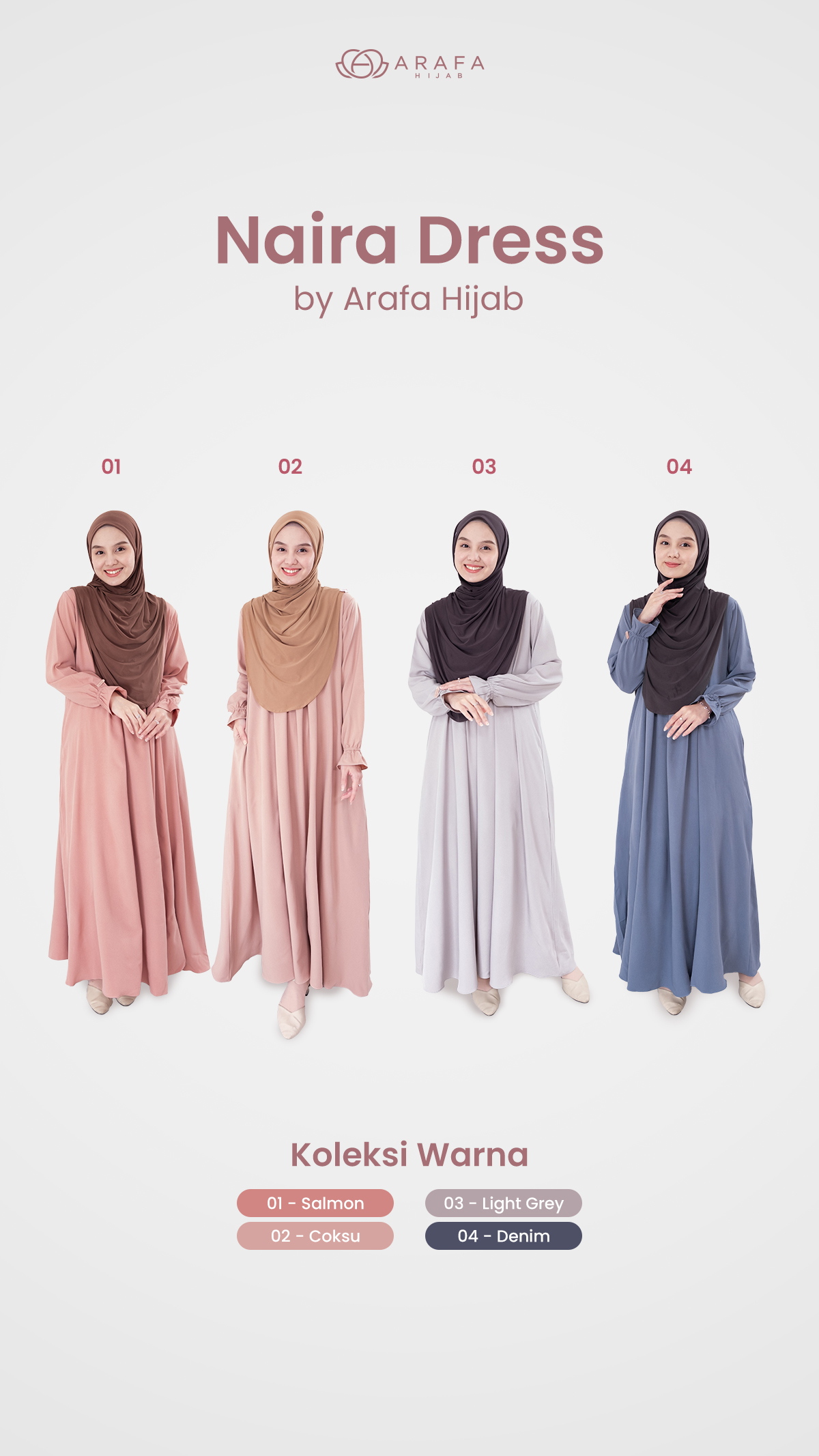 Details : Poet sleeve dengan karet (wudhu friendly), kerutan bagian tengah agar bagian bawah dress cukup lebar leluasa saat beraktifitas, saku kanan kiri, dan resleting bagian dada (busui friendly).