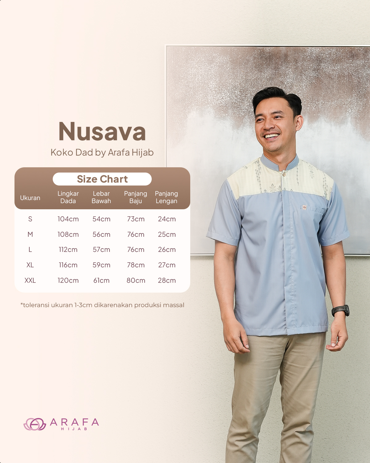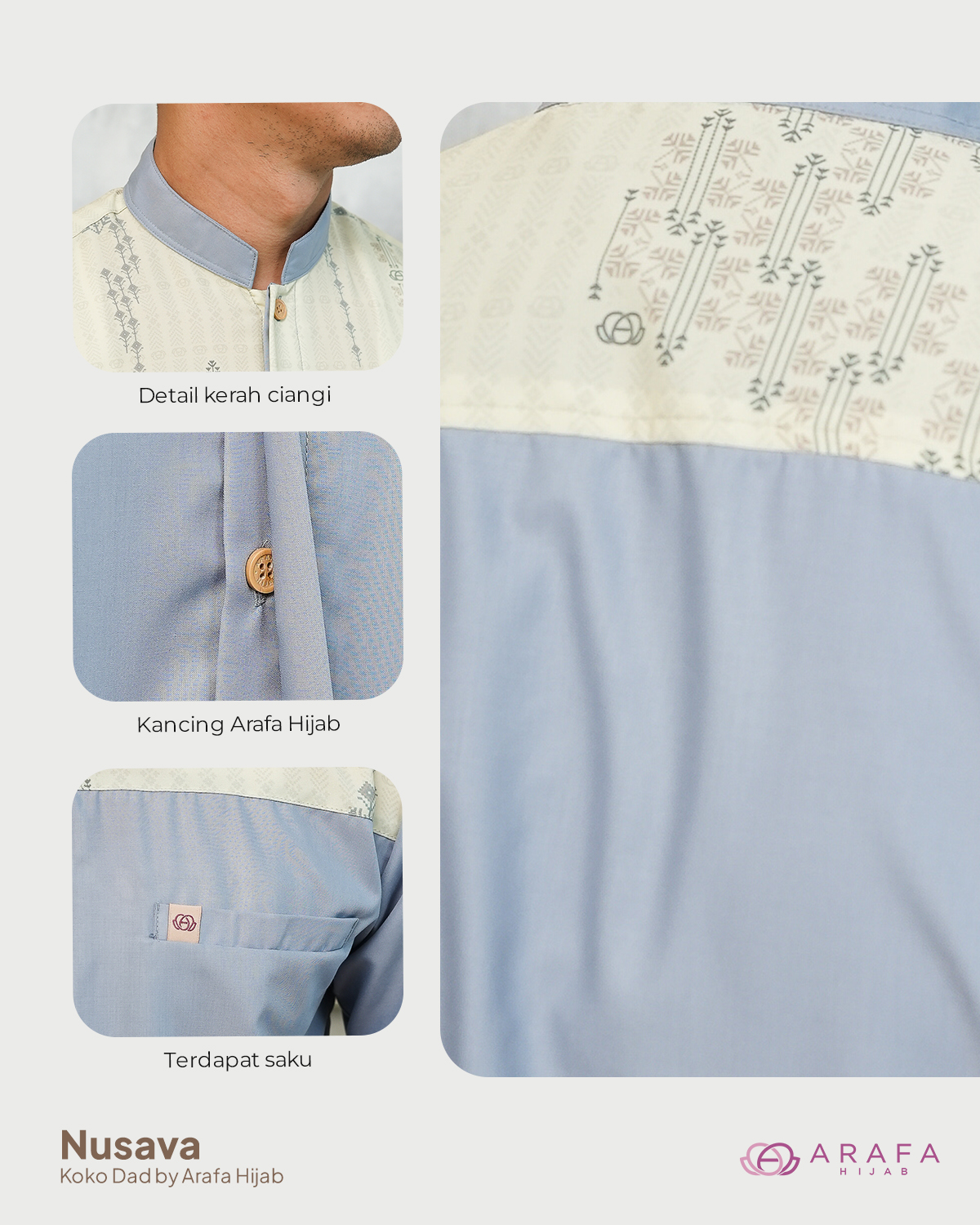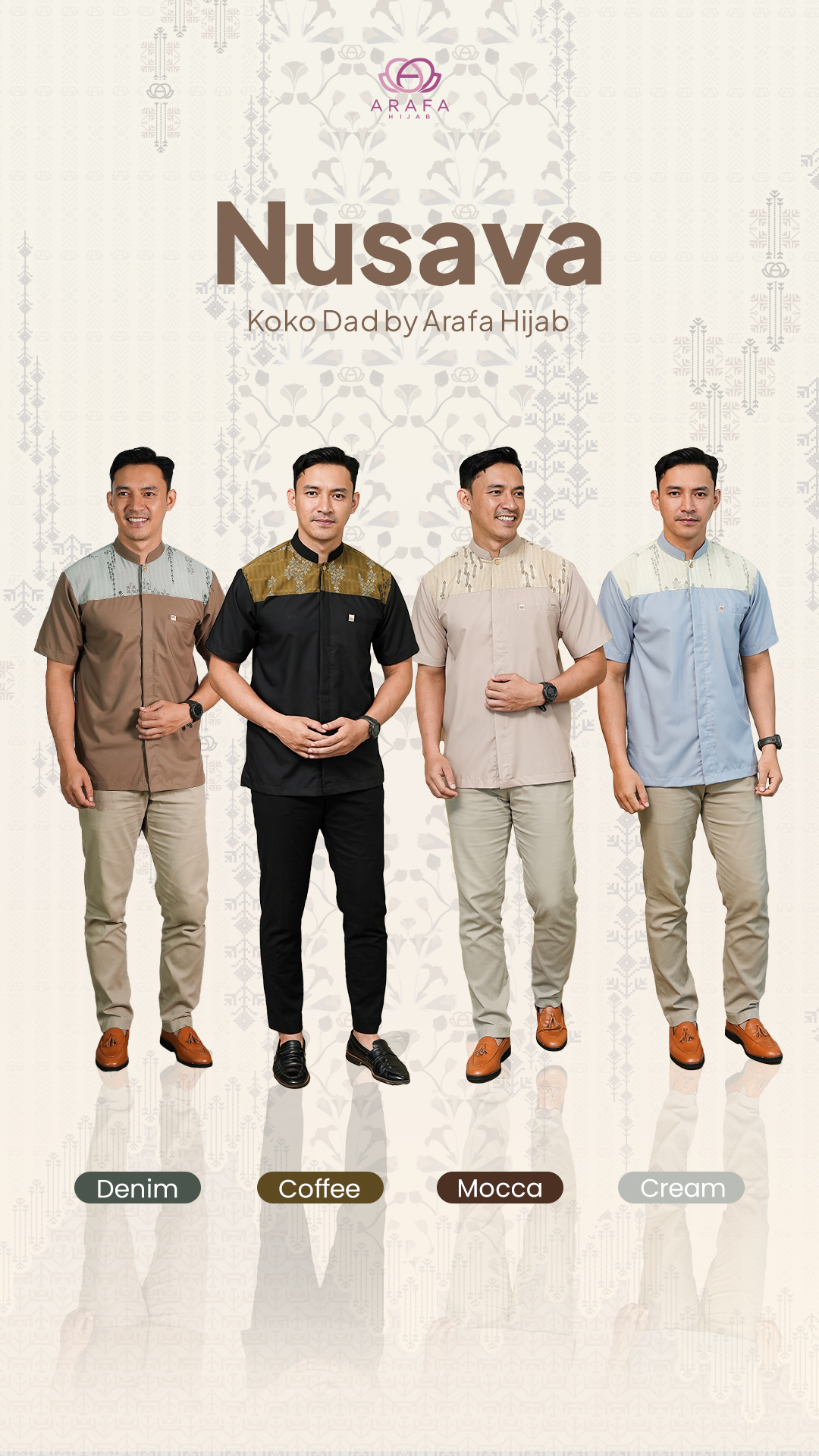 Terinspirasi dari kekayaan bumi Nusantara, Nusava hadir sebagai wujud harmoni antara budaya, alam, dan keanggunan modern. Motifnya memadukan nuansa etnik khas Indonesia, siluet bunga tropis, serta bentuk geometris yang berakar dari kearifan lokal. menghadirkan tampilan yang hangat, elegan, dan sarat makna.